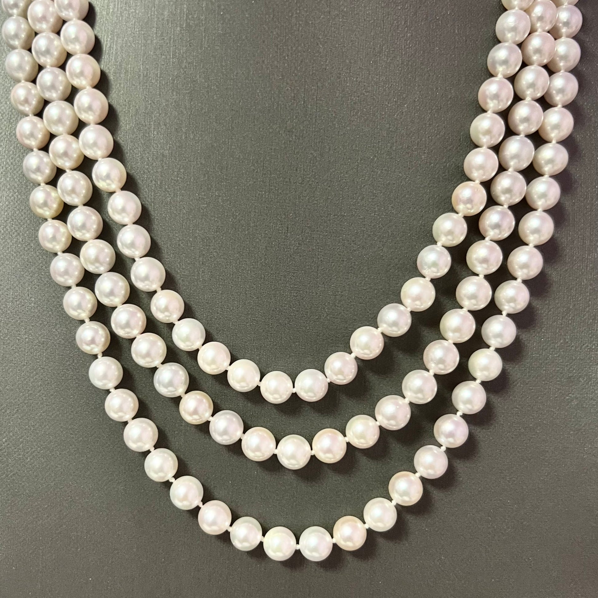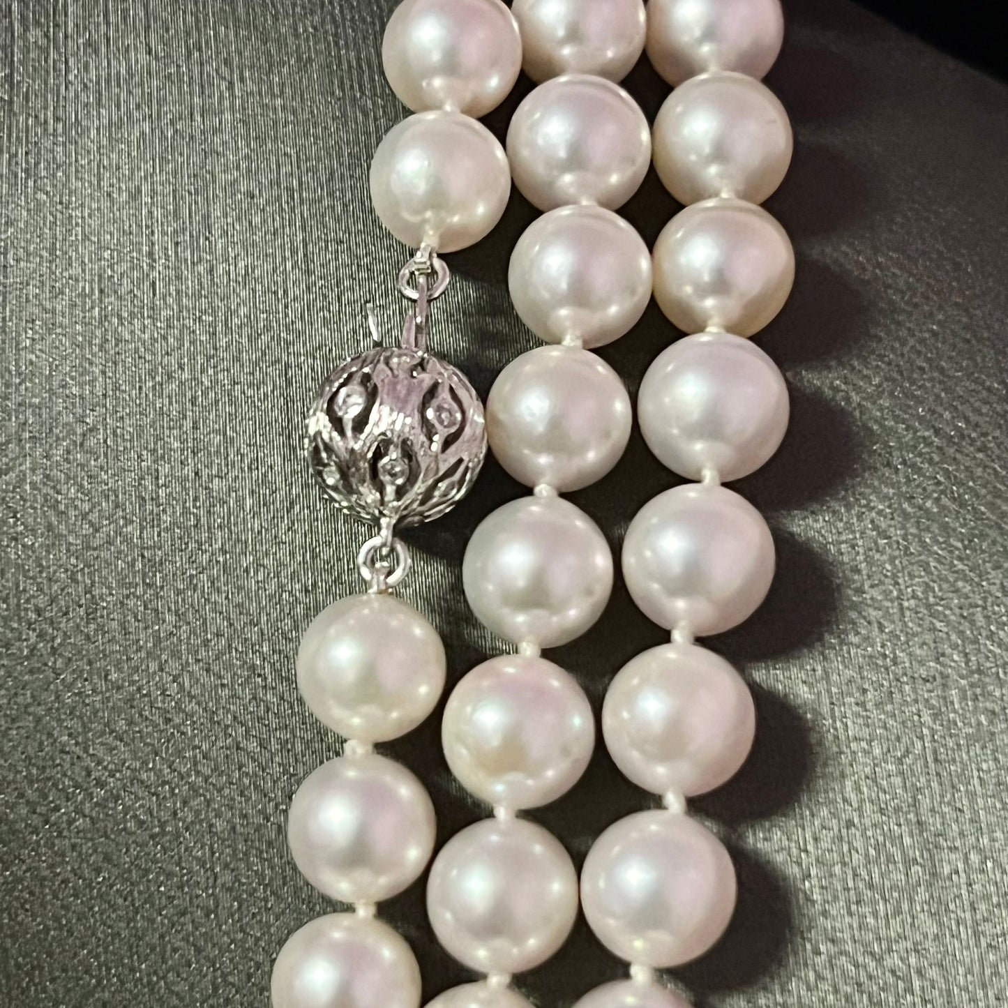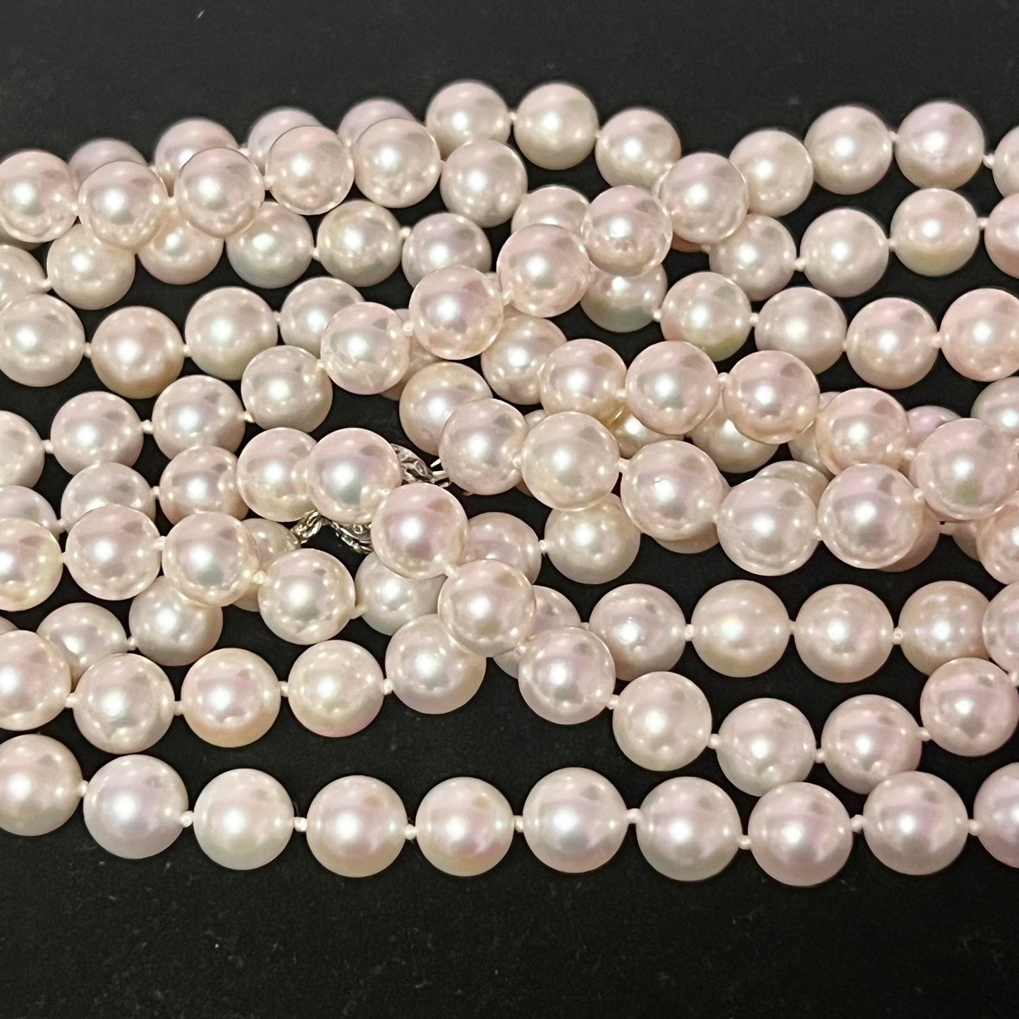 Fine Quality Japanese Saltwater Akoya Pearl Diamond Necklace very rare length 60.5" 18k White Gold 8 mm Certified $7,950 307925