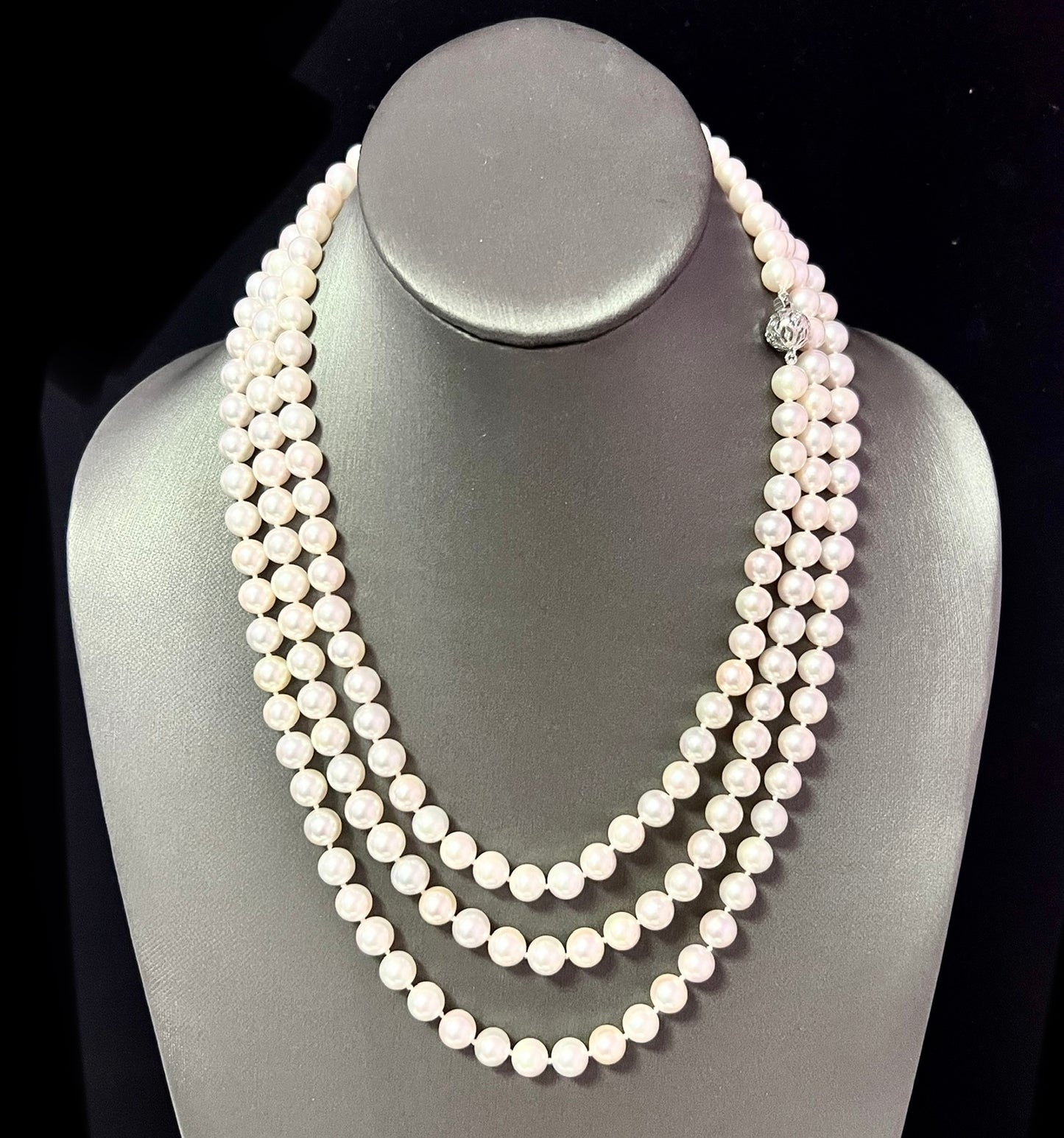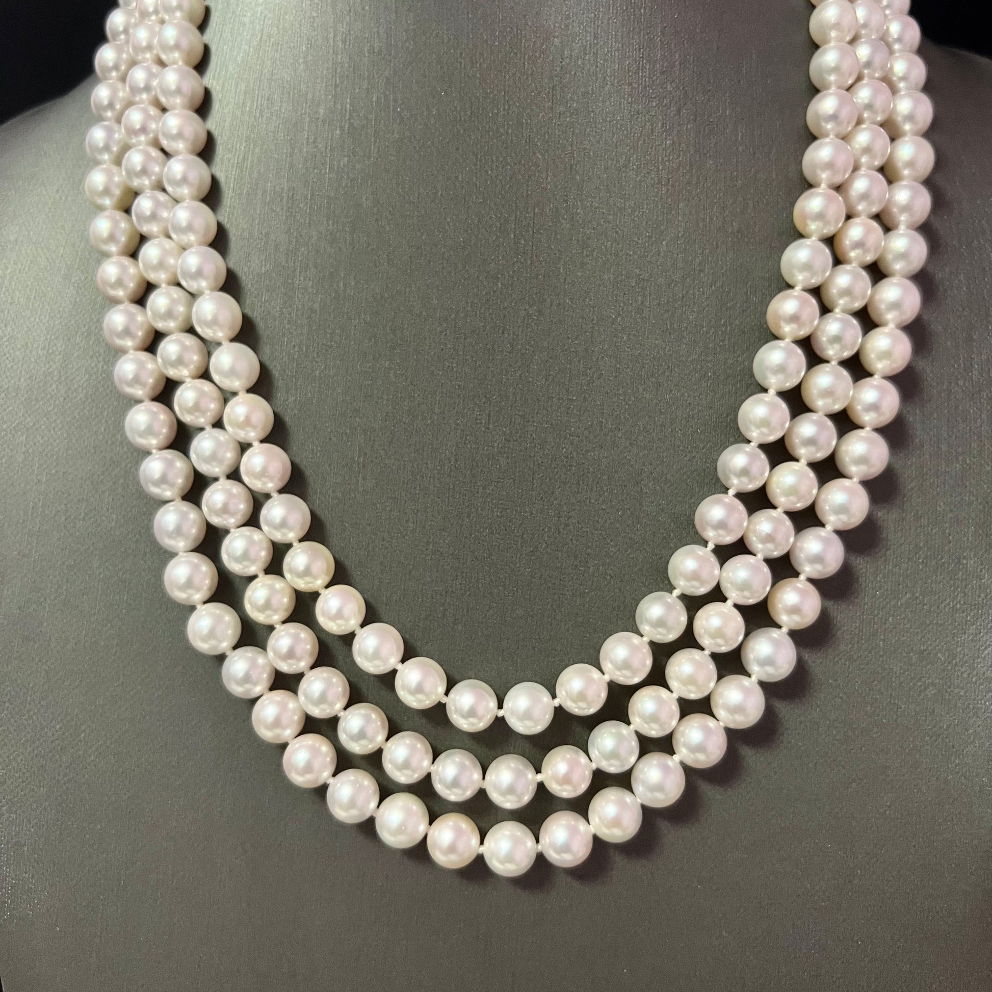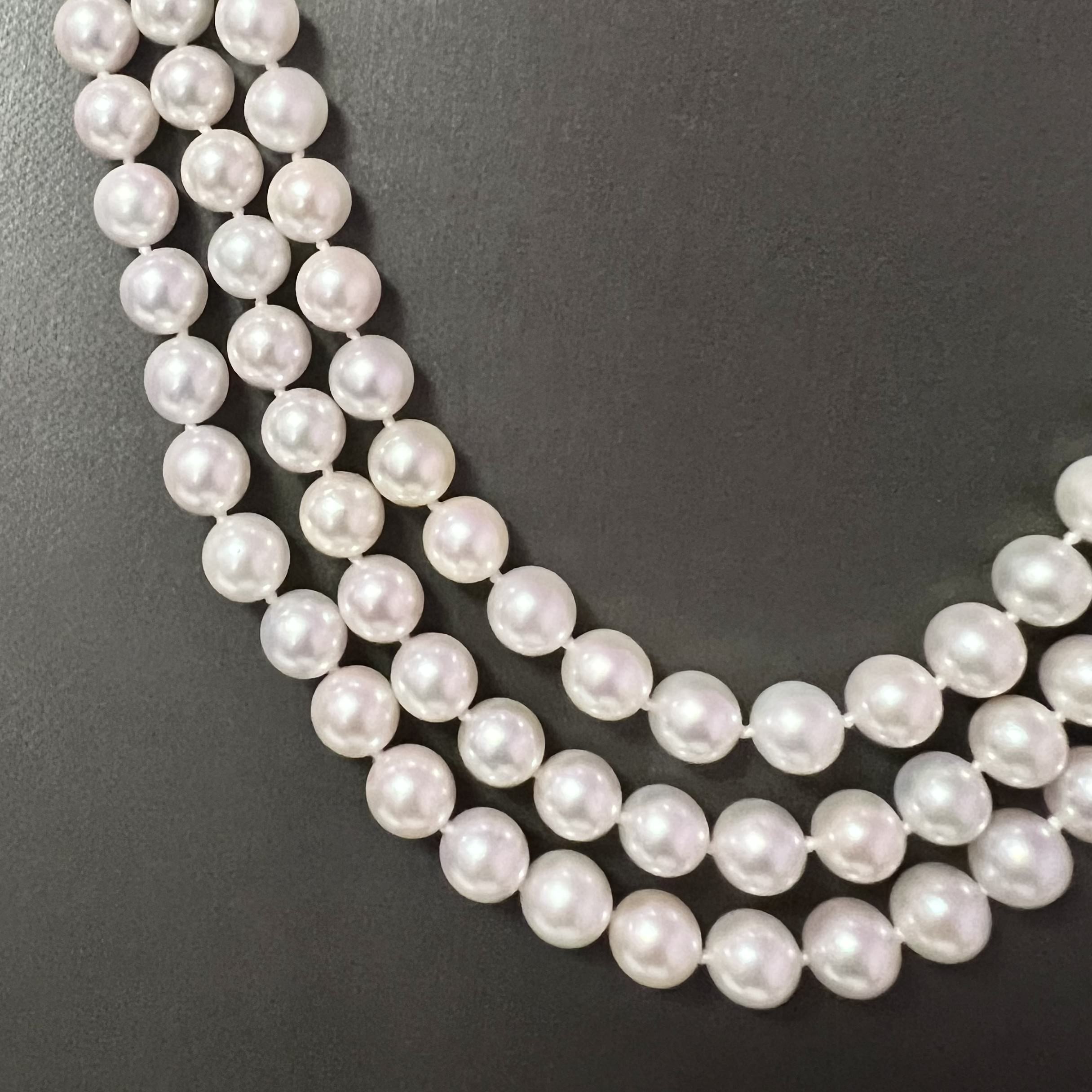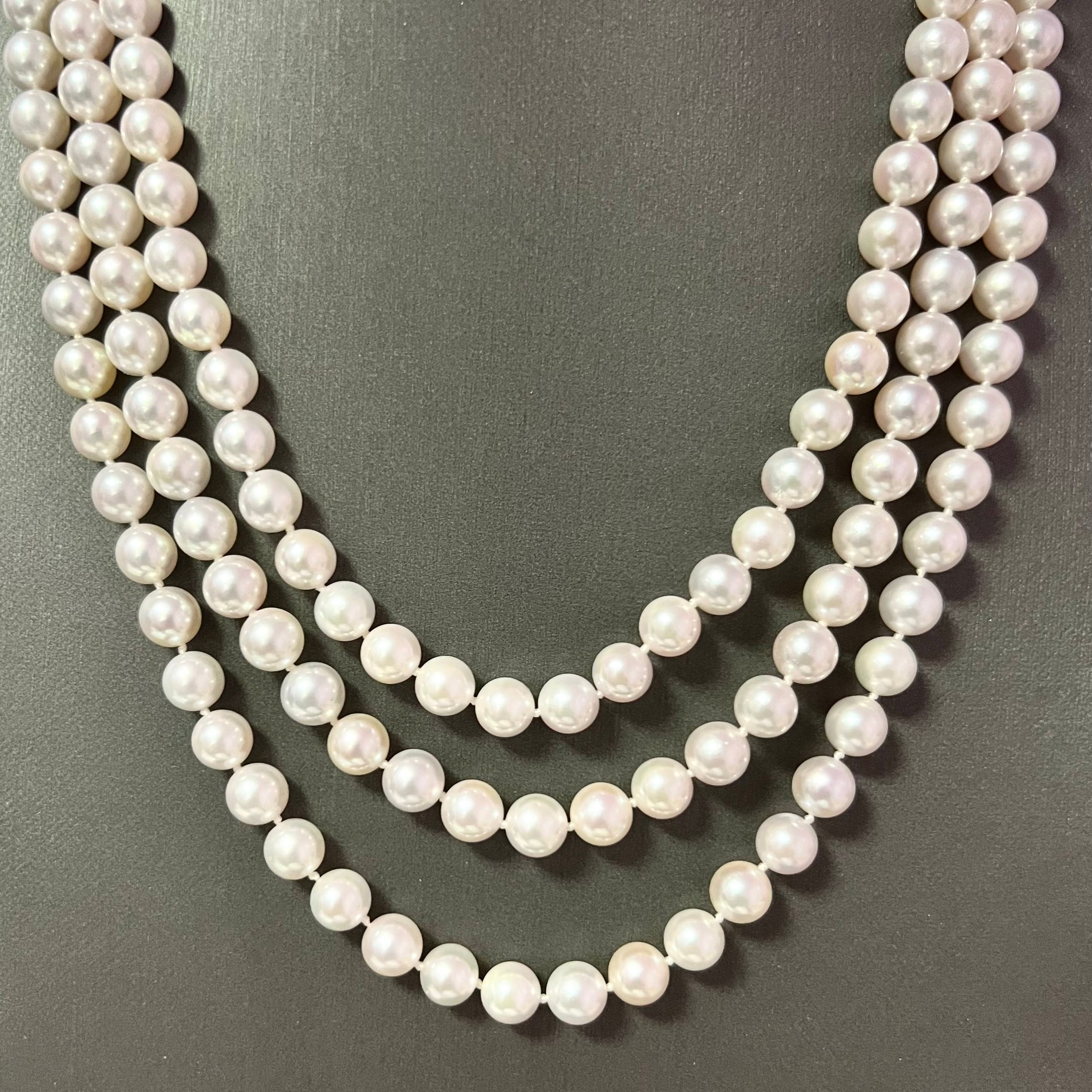 Fine Quality Japanese Saltwater Akoya Pearl Diamond Necklace very rare length 60.5" 18k White Gold 8 mm Certified $7,950 307925