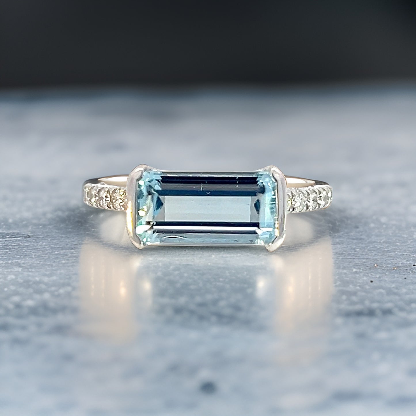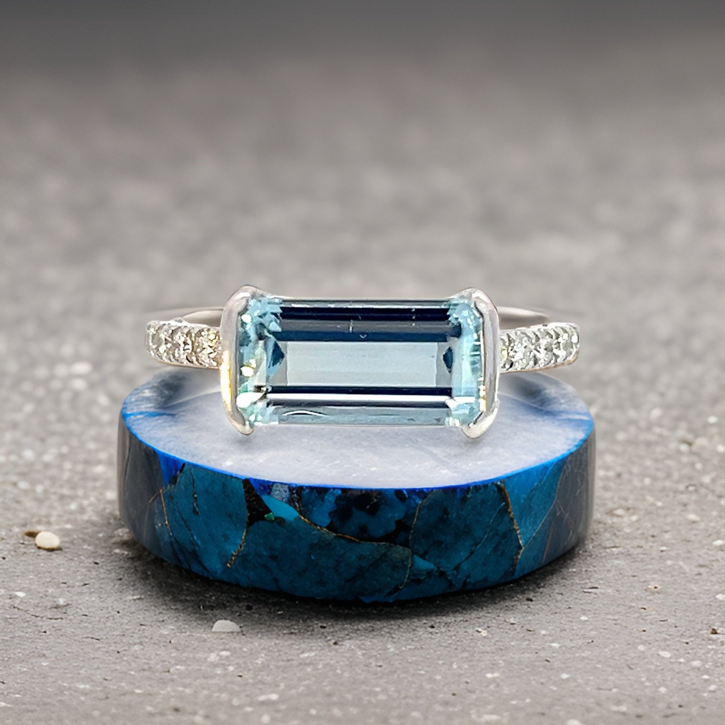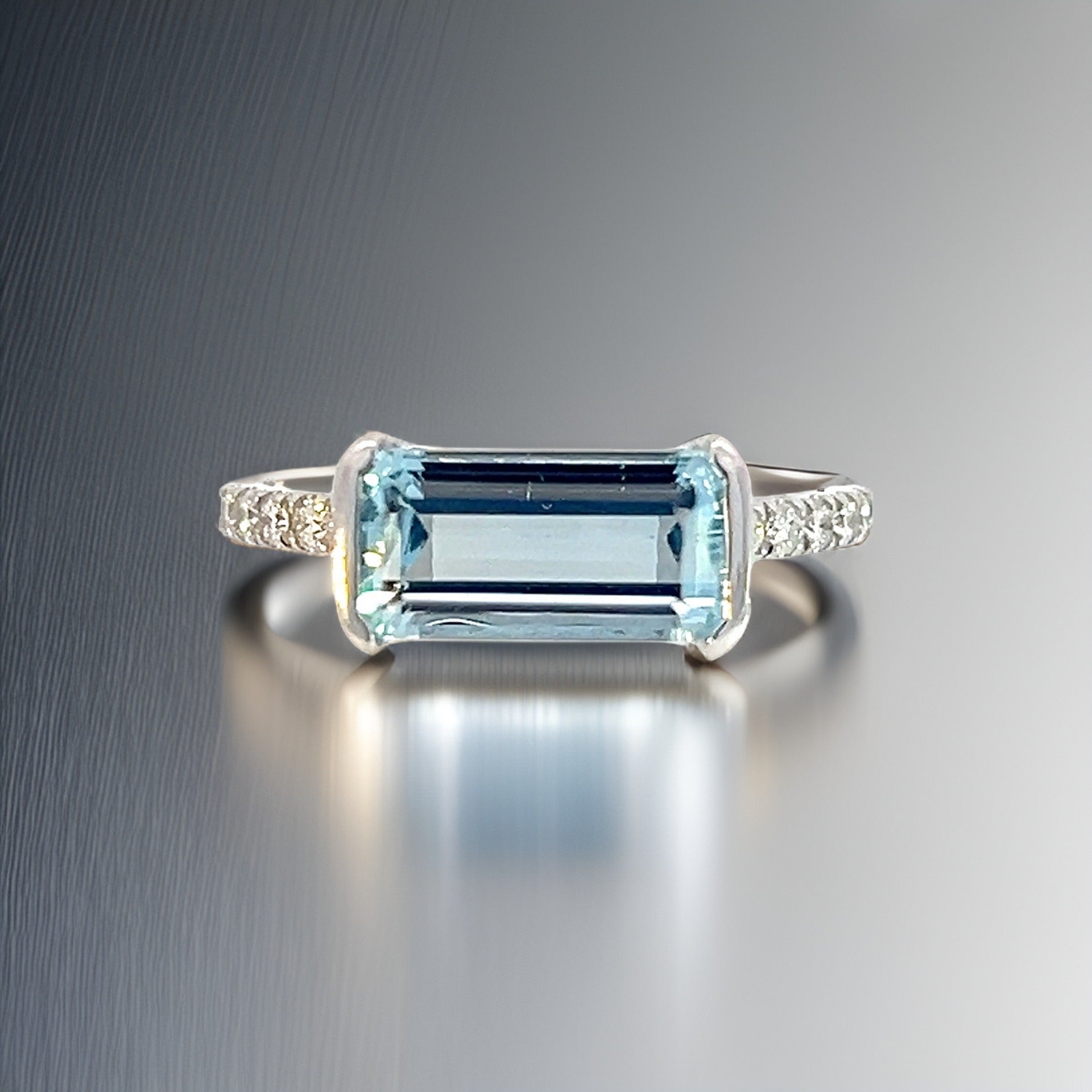 Natural Finely Faceted Aquamarine Diamond Ring 6.75 14k W Gold 2.24 TCW Certified $3,950 310651