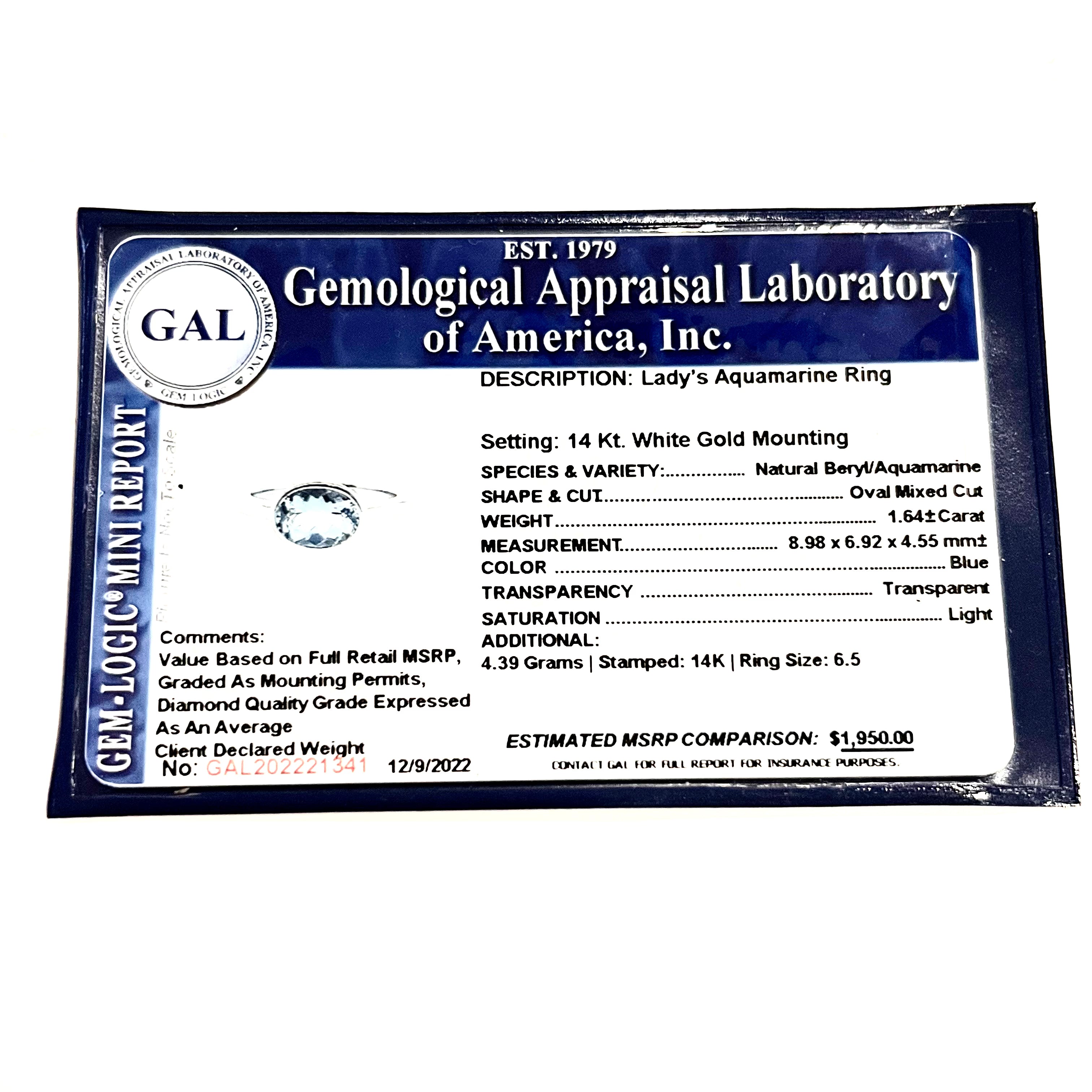 Natural Finely Faceted Aquamarine Ring 6.5 14k W Gold 1.64 TCW Certified $1,950 221341