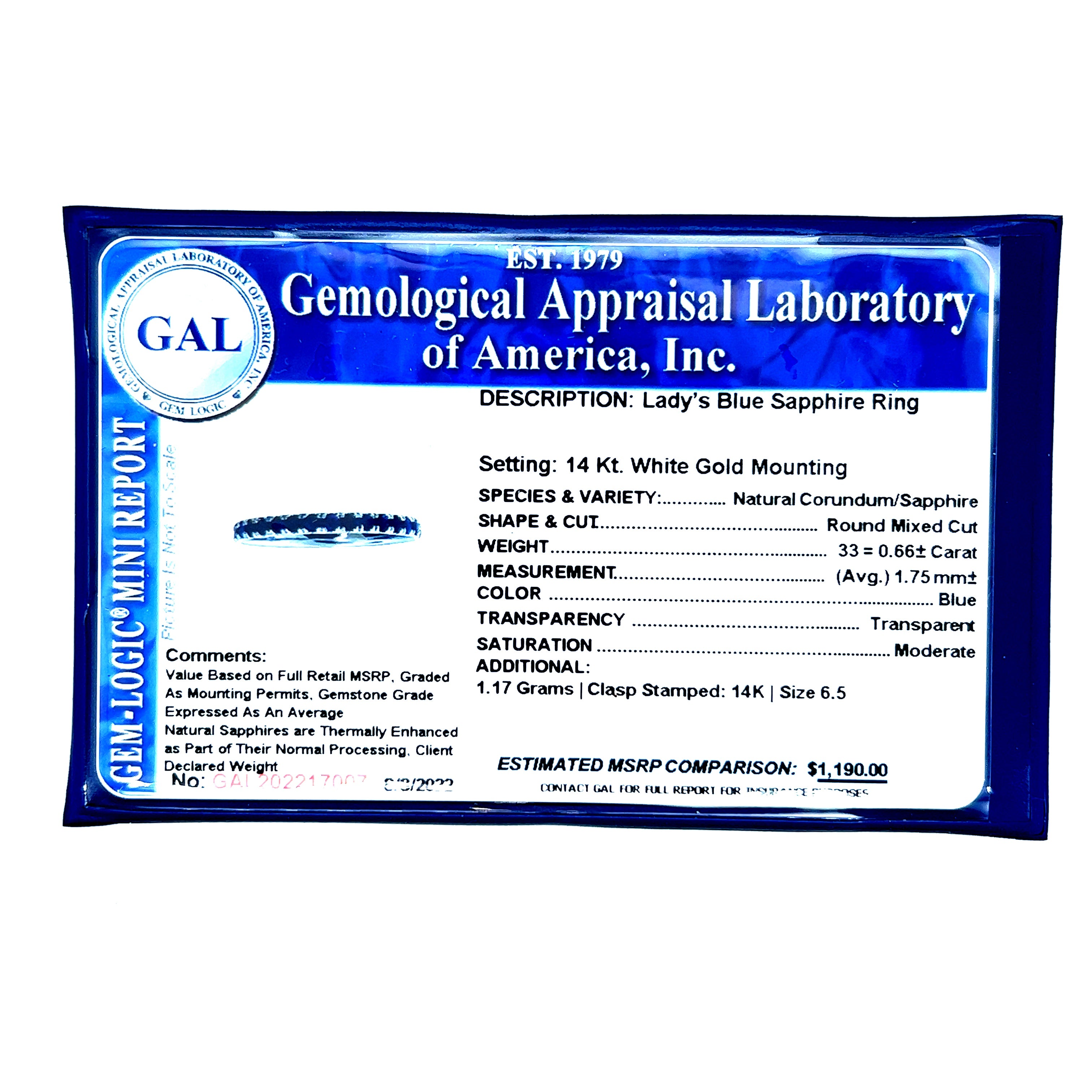 This Sapphire ring has been Certified, Inspected, and Appraised by Gemological Appraisal Laboratory