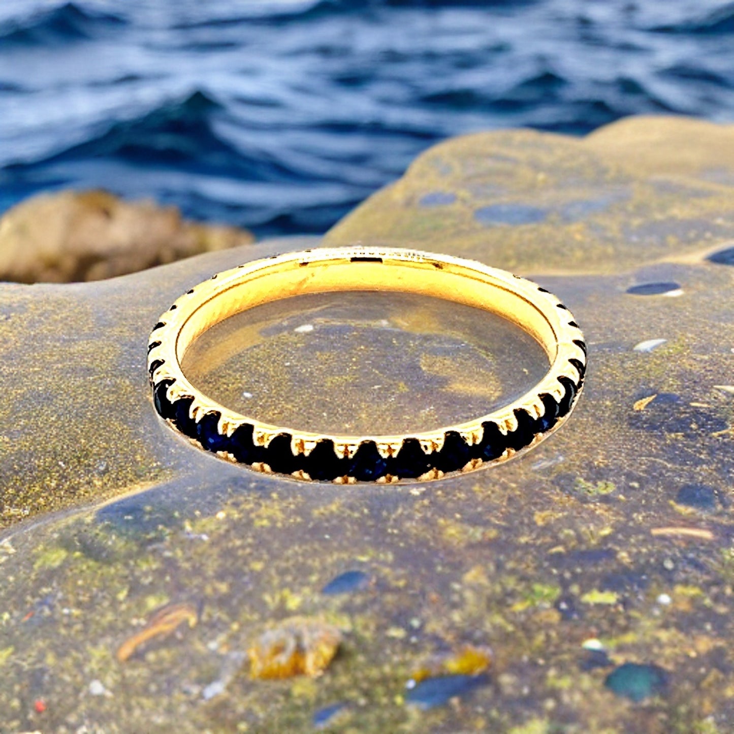 This Natural Blue Sapphire Eternity Band is a timeless and elegant ring, featuring a continuous line of deep blue sapphires encircling the entire band.