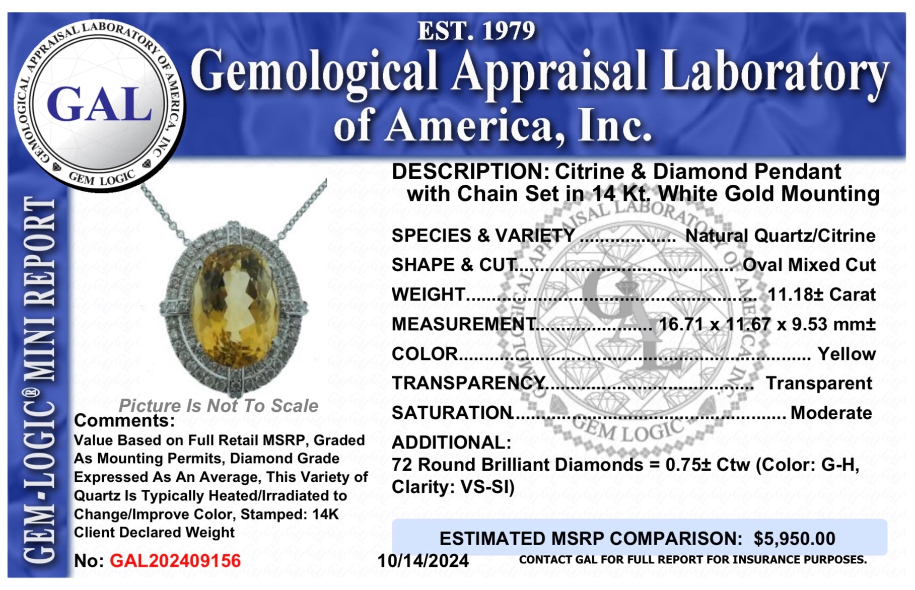 This Citrine and diamond necklace has been Certified, Inspected, and Appraised by Gemological Appraisal Laboratory