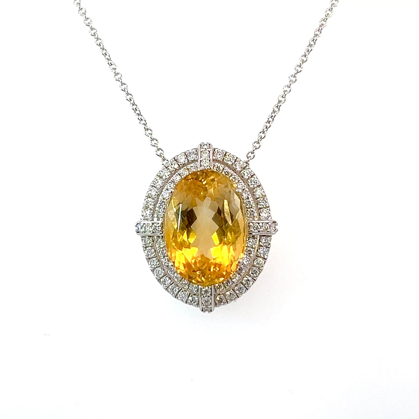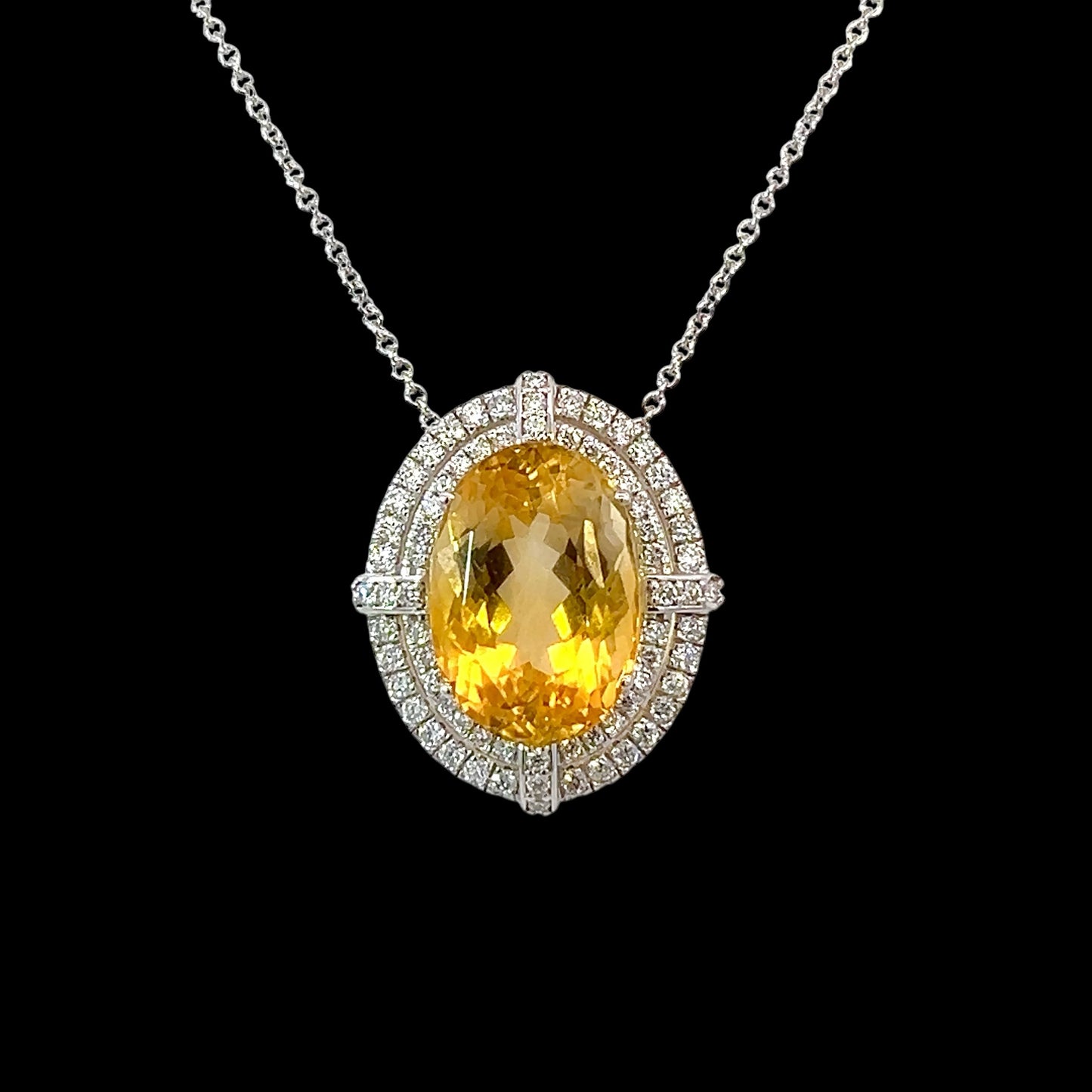 This one of a kind, custom-made necklace is a unique and exquisite creation, featuring natural, finely faceted citrine gemstones celebrated for their warm golden hues and radiant brilliance.