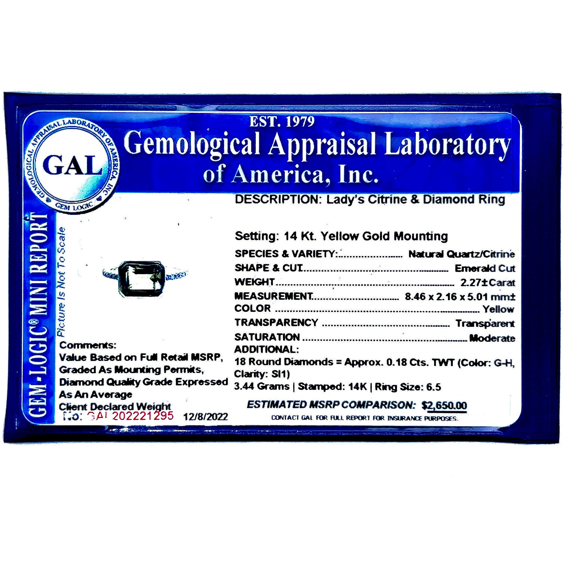 This Citrine and Diamond ring has been Certified, Inspected, and Appraised by Gemological Appraisal Laboratory