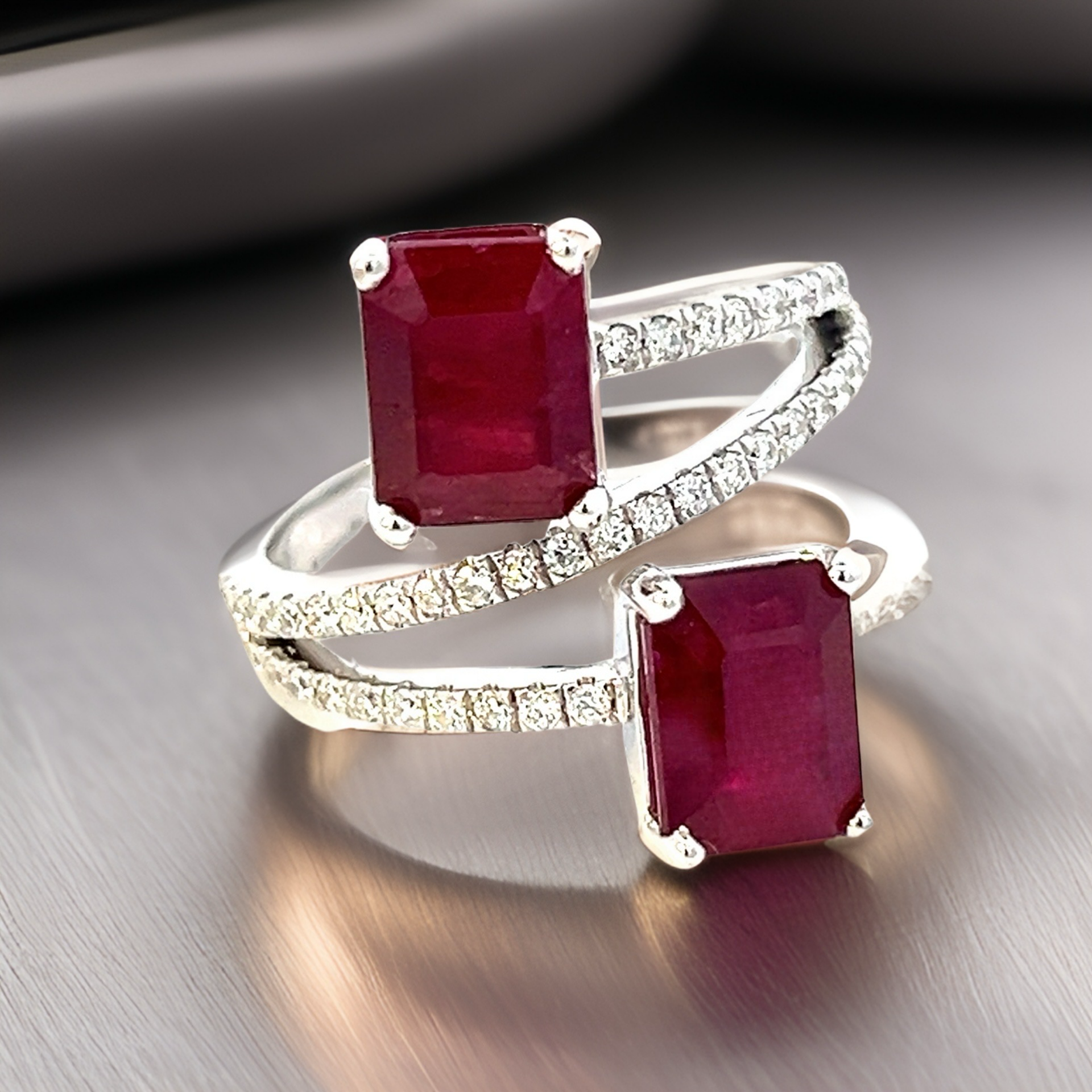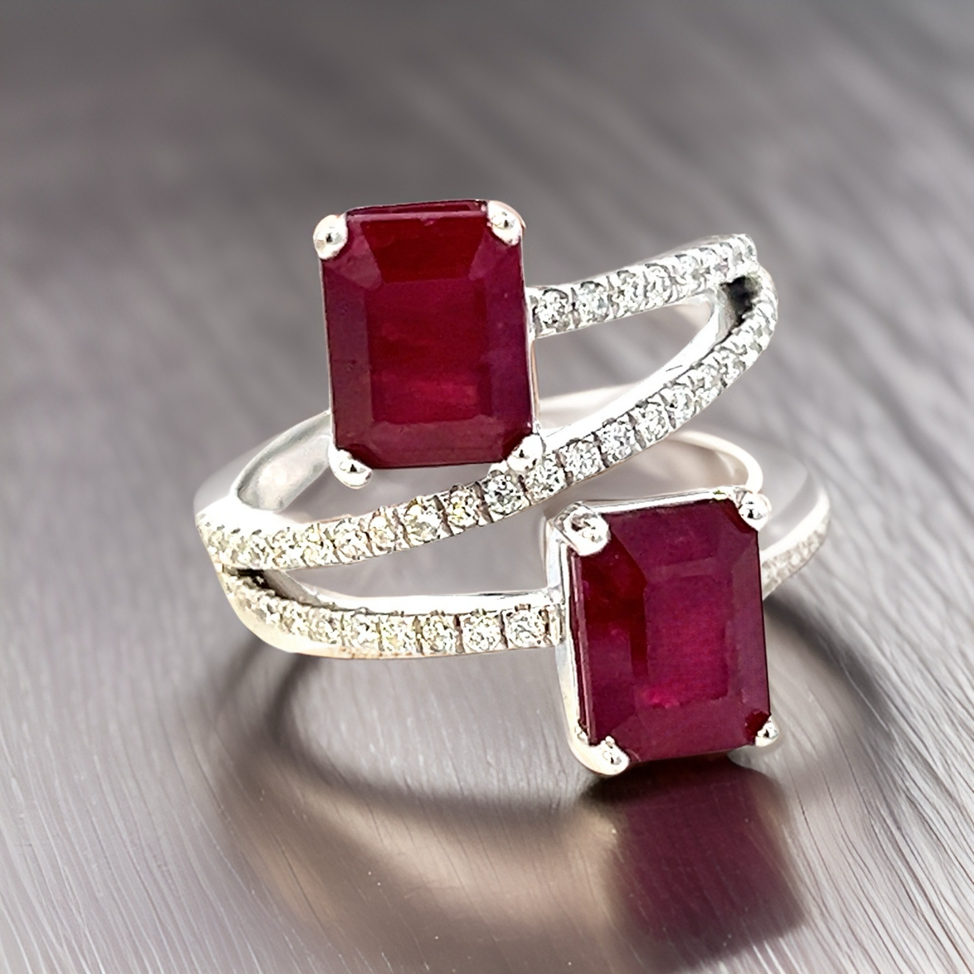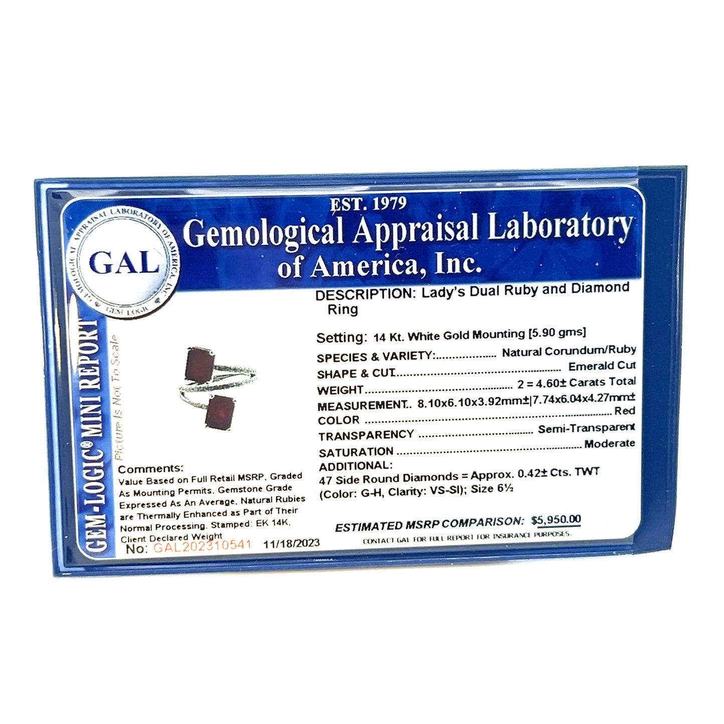 Magnificent Natural Dual Ruby and Diamond Ring 6.5 14k W Gold 5.02 TCW Certified $5,950 310541