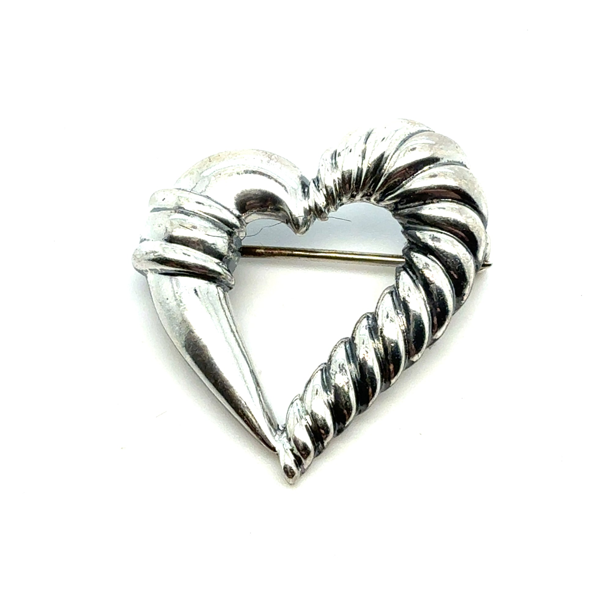 Tiffany & Co Estate Heart Brooch Pin Sterling Silver TIF971